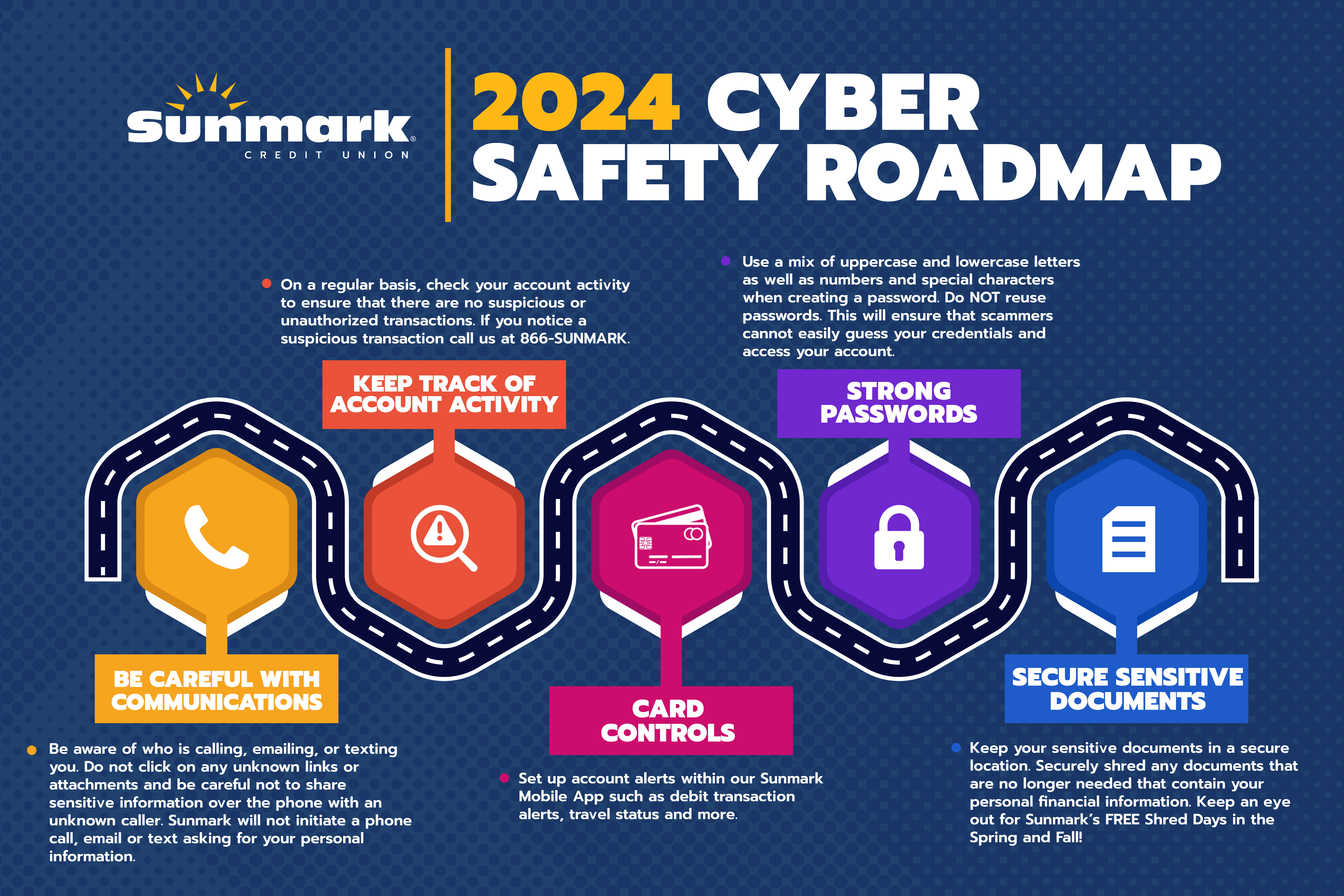 SUNMARK RISK CENTRAL: Cyber Safety RoadmapFraudsters are constantly looking for ways to sophisticate their scamming methods, and there's no better time than the New Year to review ways to keep yourself, your family, and your assets safe from bad actors. The Sunmark Risk Management team has compiled a list of five easy-to-remember ways to stay vigilant in 2024 and beyond!